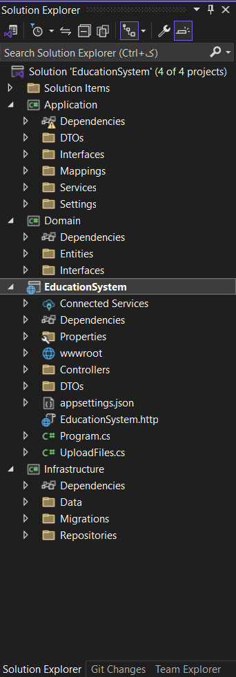 Designing modular and maintainable software architectures with separation of concerns across Domain, Application, Infrastructure, and Web layers.