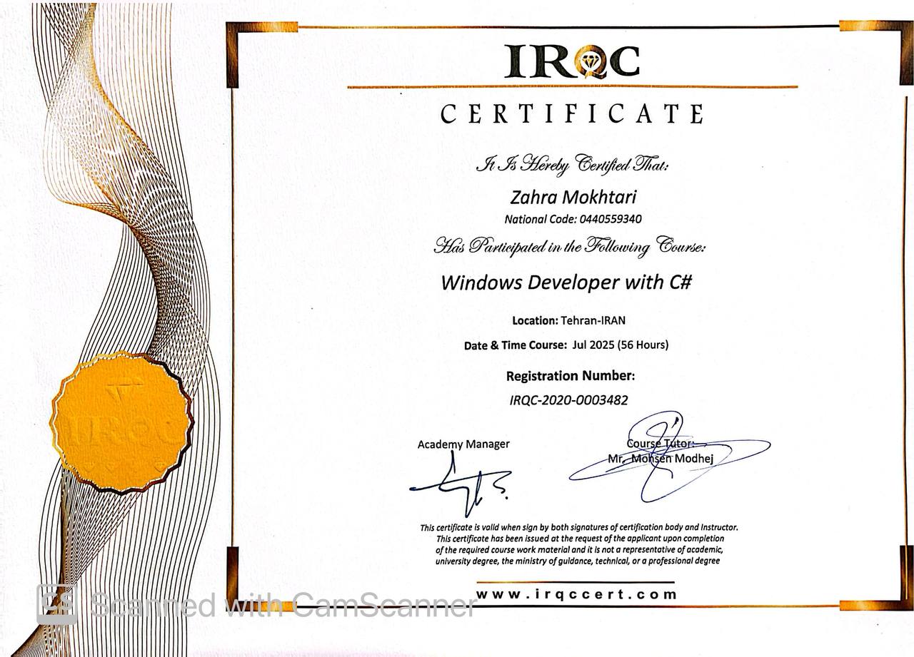- Developed a custom CRM for a local store using WPF and SQL Server
