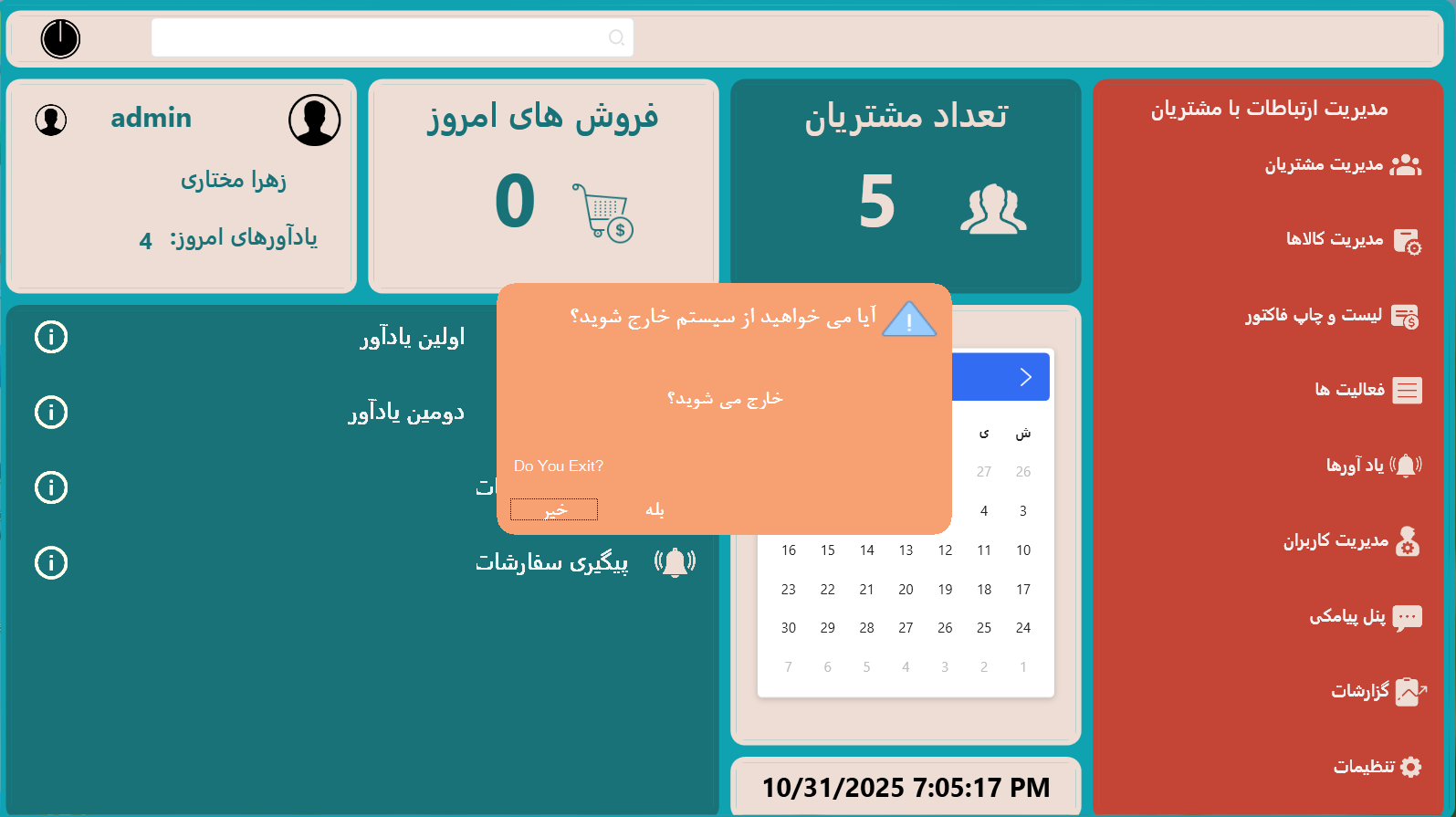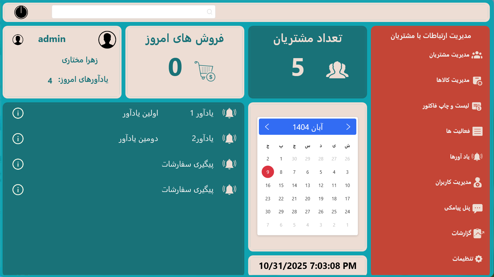 Customer Relationship Management system for stores. Features sales tracking, client management, and reporting dashboards.
